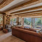 Die 8-Zimmer-Villa Dolomites Cesa Del Louf Superior verfügt über eine Terrasse mit Aussicht auf die Berge sowie einen Swimmingpool.